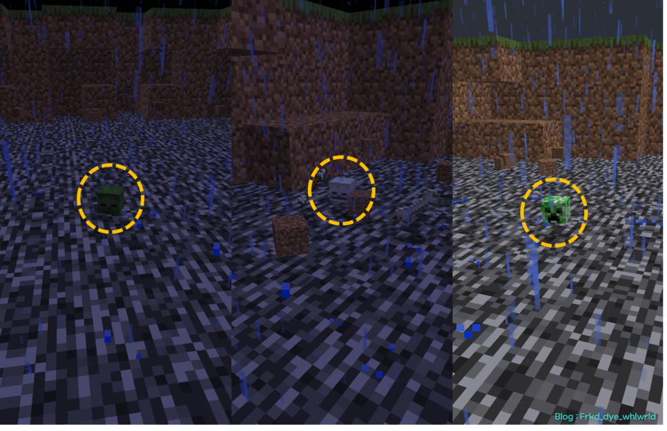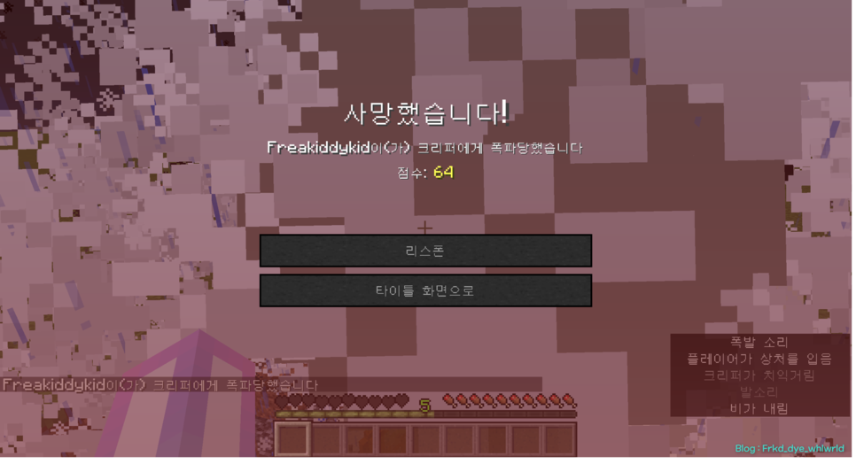 이렇게 몬스터 친구들(크리퍼, 좀비, 스켈레톤)의 옆으로 데려가