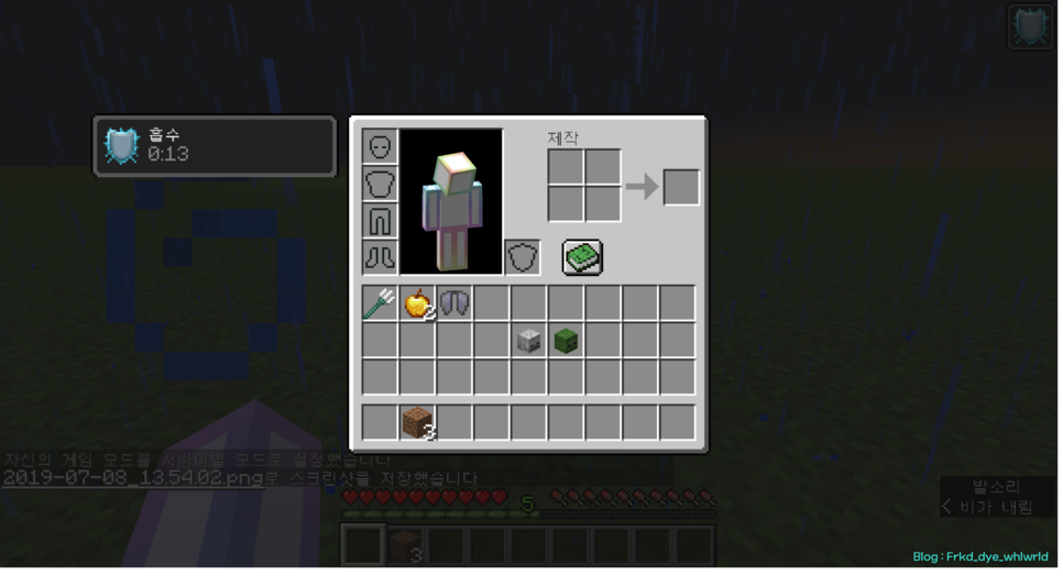 (빠른 진행을 위해 크리에이티브/치트 모드를 사용하였다.)