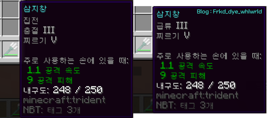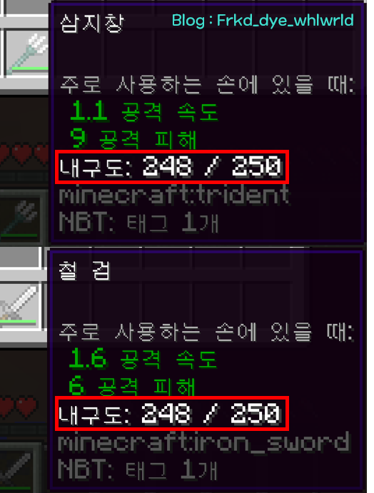 즉 내구도가 많이 낮다는 것인데, 간신히 어렵게 얻은 삼지창을 내구도 부족으로 허망하게 날리고 싶지 않다면
