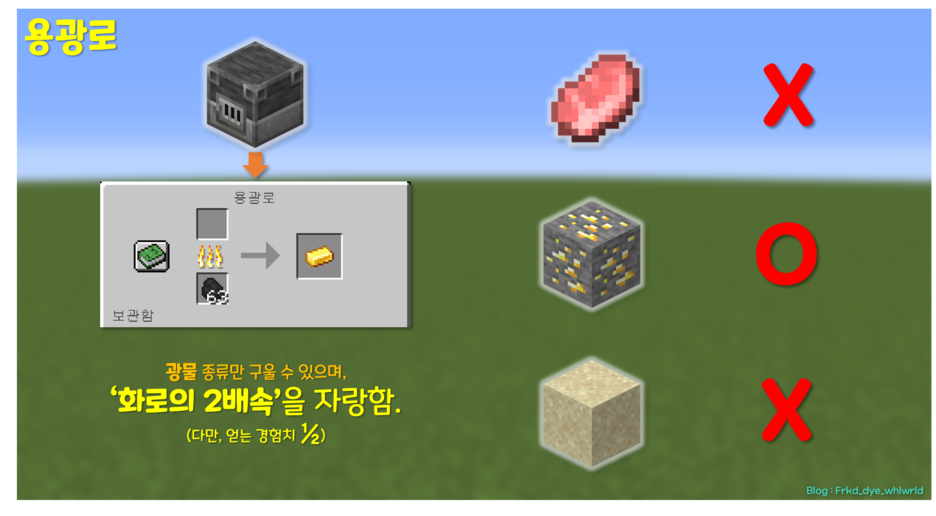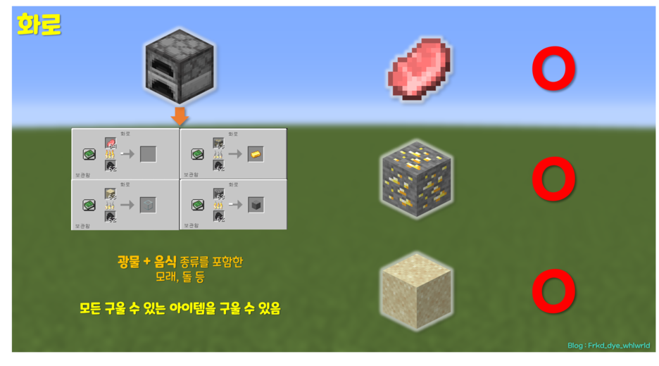 용광로에서는 음식, 모래, 돌 같은 아이템은 구울 수 없으며
