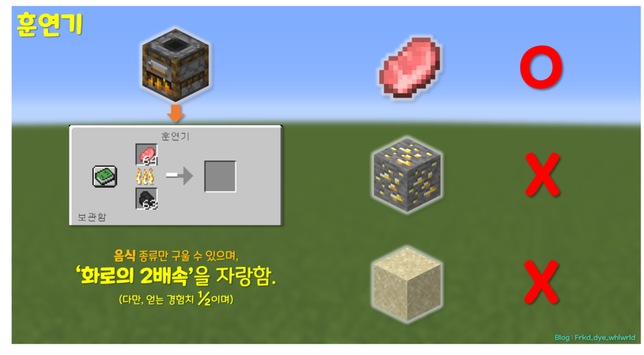 훈연기와 용광로는 이번 1.14에서 새로 업데이트된 블럭이다.