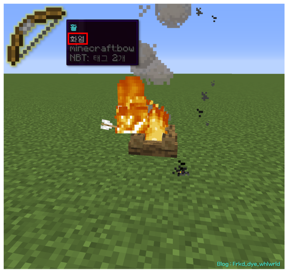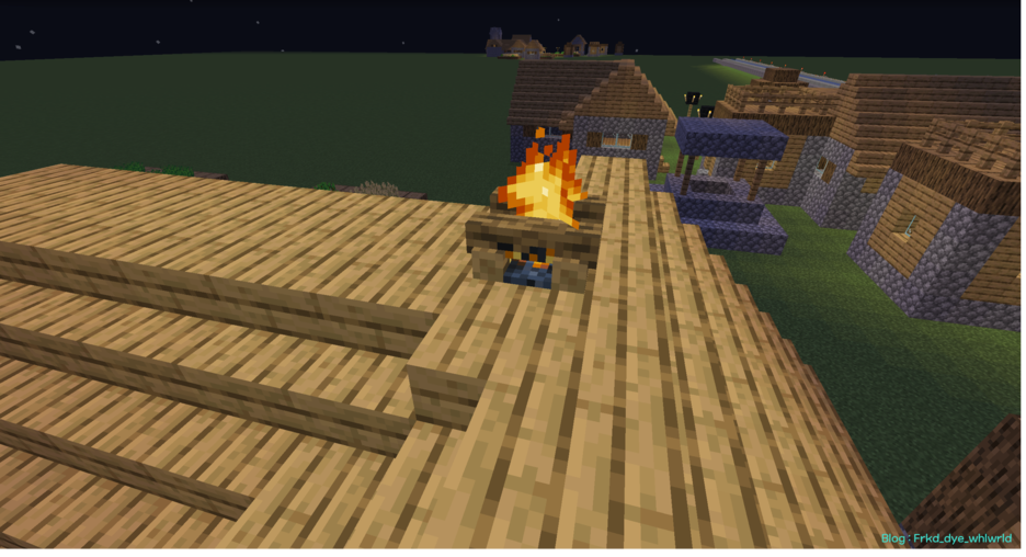 그런데, 여기서 모닥불 밑의 블록을 건초 더미(밀 9개를 합쳐 만듦)로 교체하면,