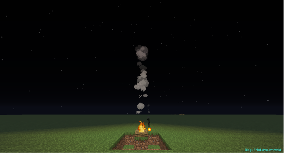 기본적으로 모닥불의 연기는 위로 약 10블록 높이까지 올라간다.