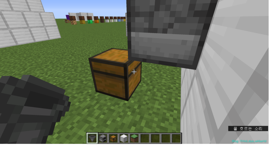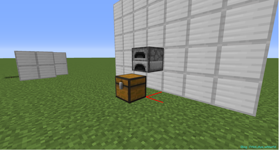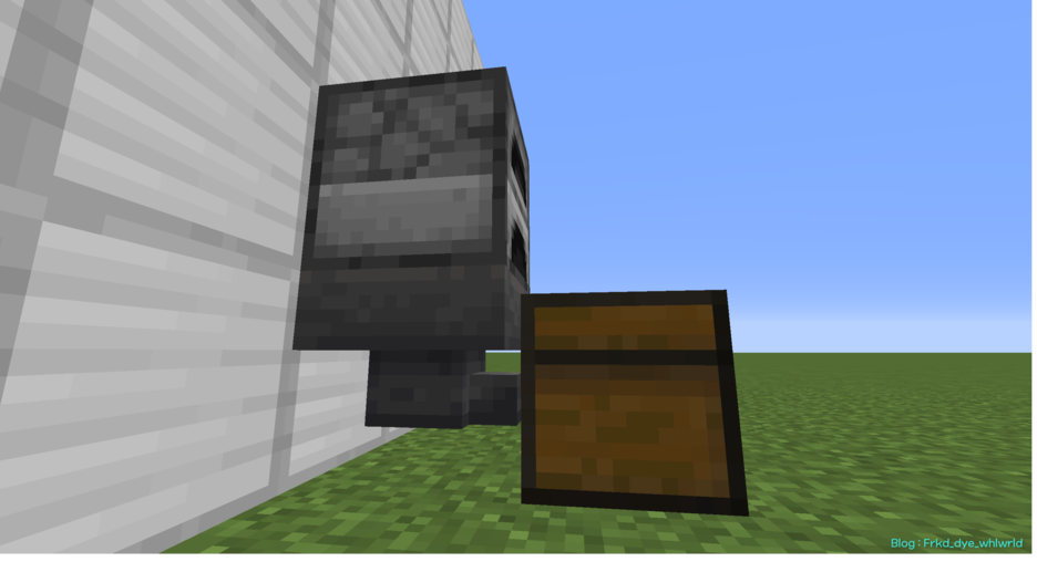 설치 방법은 위의 사진처럼 십자선을 상자의 뒤로 향하게 둔 후 shift 키를 누른 상태에서 호퍼를 설치해주면 된다.