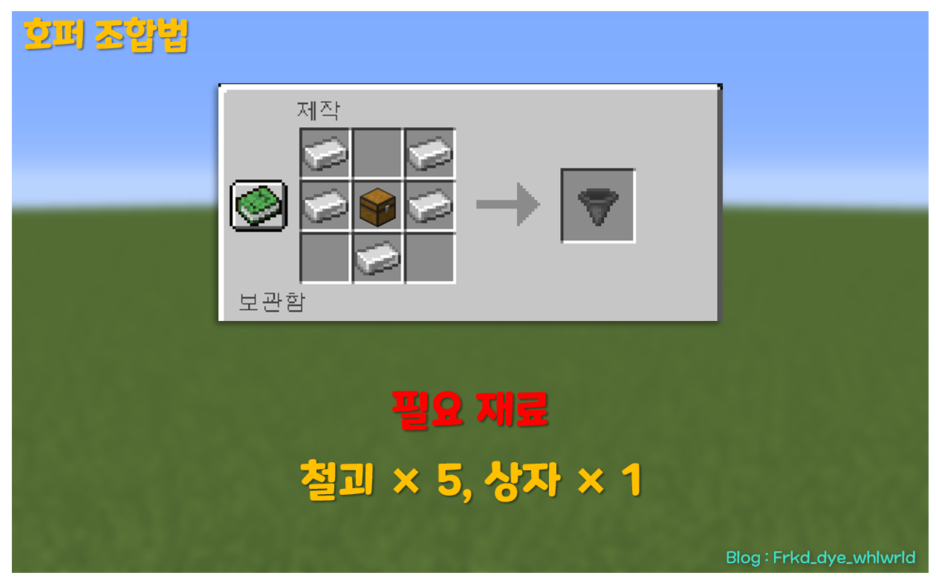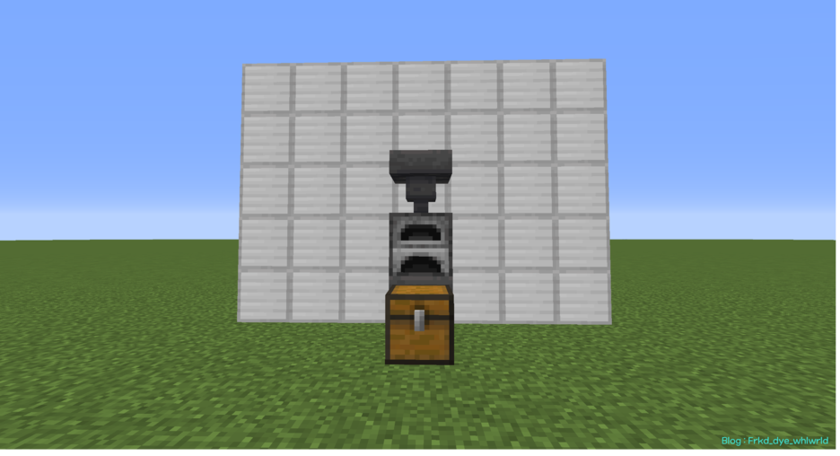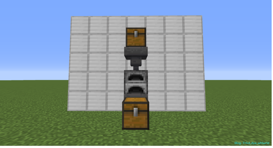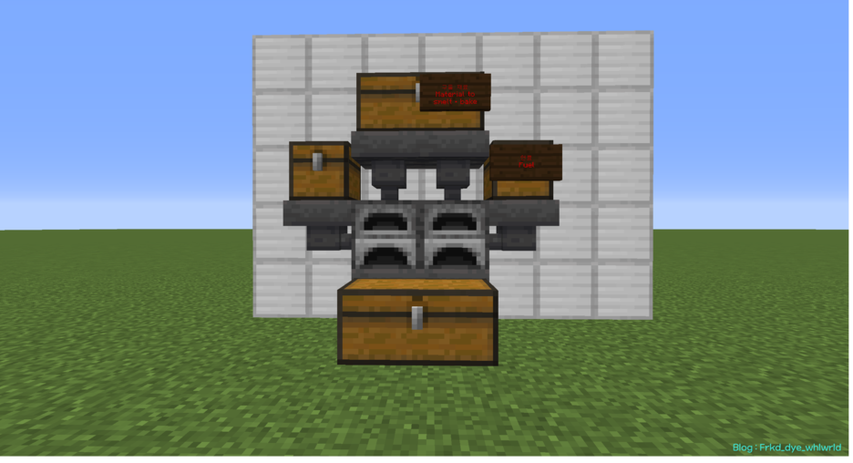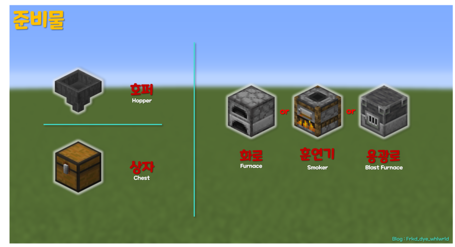 위의 사진에서 보이듯 화로 대신에 용광로나 훈연기를 사용해도 괜찮으며, 호퍼는 최소 3개 이상, 상자 또한 3개 이상 준비하는 것이 좋다.