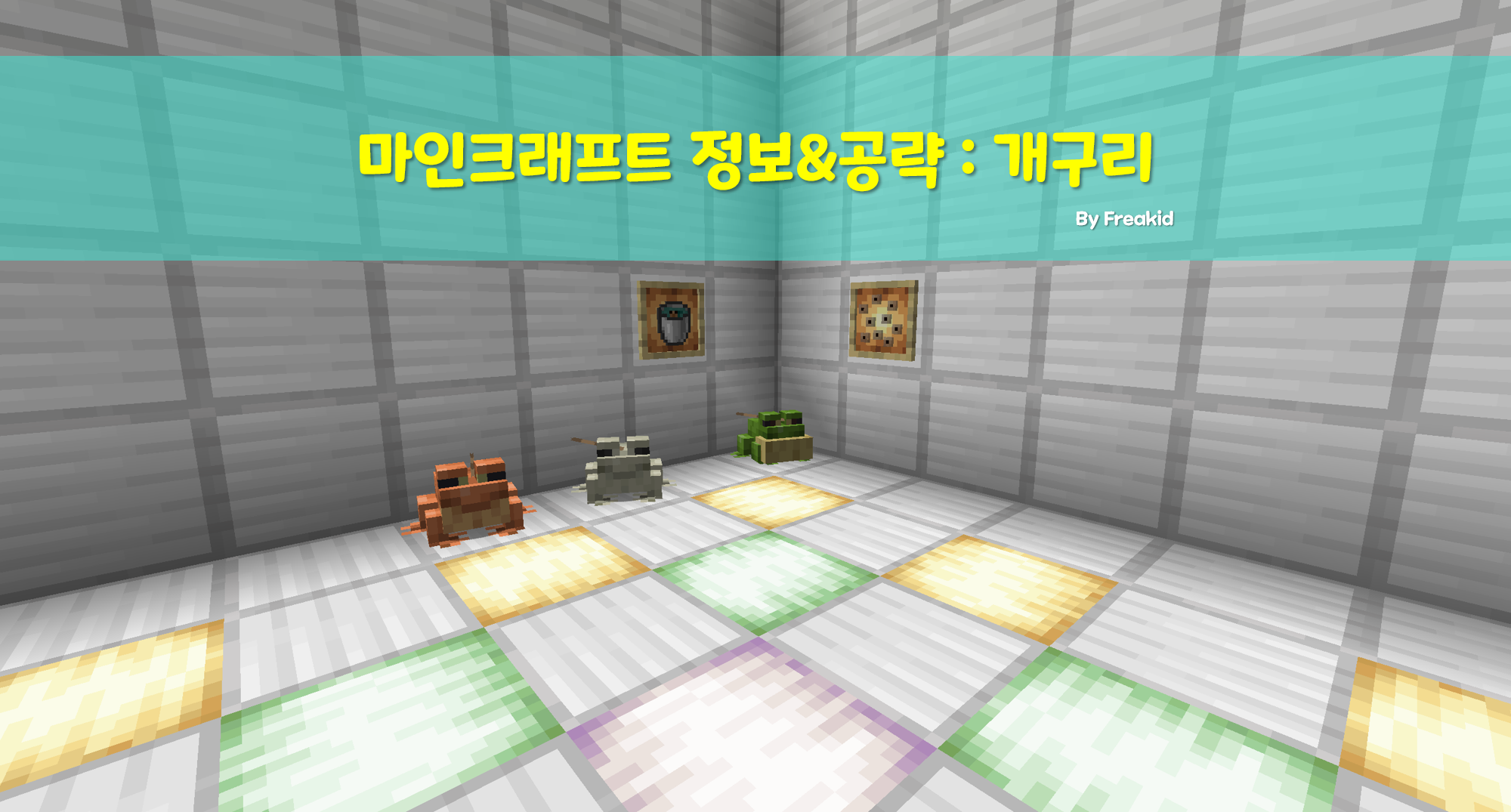 개구리는 1.19 버전 업데이트와 함께 추가된 비공격적 몬스터로, 세 가지 색을 가진다.