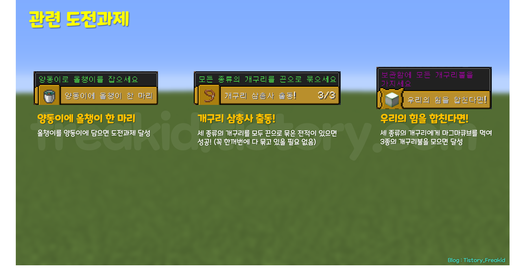 앞의 두 개의 도전과제와, 네더에서 스폰이 가능한 흰색 개구리의 개구리 불 생성은 생각보다 쉽게 달성할 수 있다.