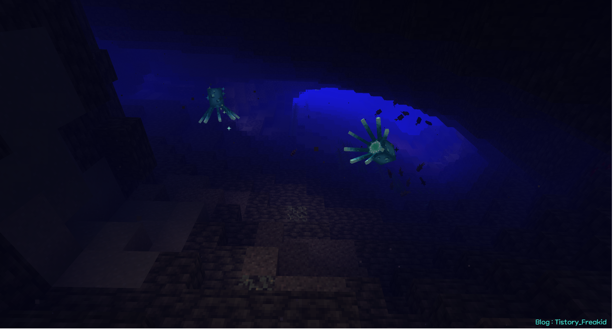 원래는 16번째 정보&공략 글로 아홀로틀을 다뤄보려 했는데, 야생맵에서 아무리 돌아다녀봐도 아홀로틀이 있는 동굴을 발견할 수가 없었다. 저주받은 시드인지, 점토가 5개 이하로 섞인 물가가 있는 무성한 동굴이 근 1시간을 찾아다녀도 안 나오더라. 그래서 하는 수 없이 포기하고, 아홀로틀 대신 발견한 발광 오징어 관련 글을 작성하기로 마음먹었고, 이렇게 빠르게 써냈다.