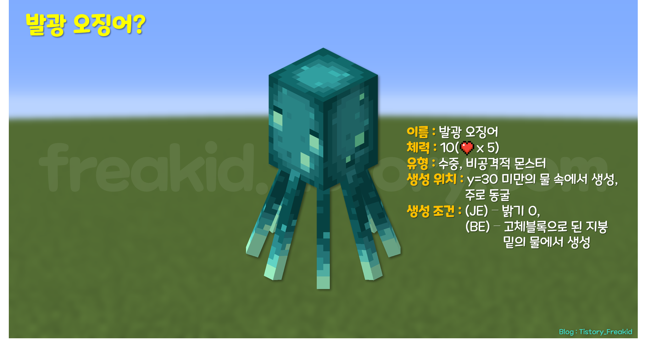 발광 오징어는 1.17 업데이트와 함께 추가된 몬스터로,