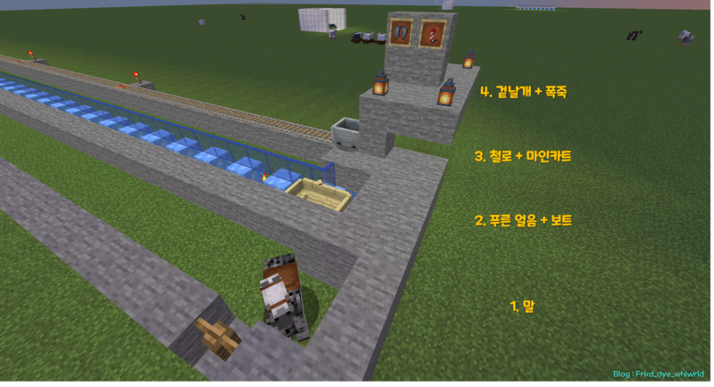 보트 열차를 만들어 활용하고 싶다면 마인크래프트 버전을 1.9 이상으로 업데이트 해야 한다..]