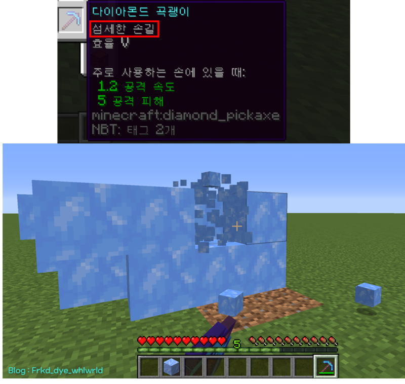 그래서 얼음을 채취하려면 반드시 곡괭이에 '섬세한 손길'을 붙이고 채취해야한다.
