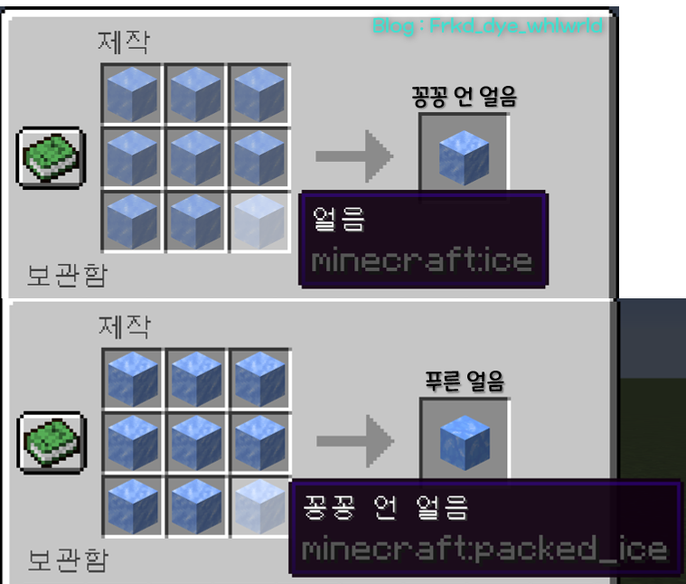 먼저 횃불과 푸른 얼음을 다음과 같이 설치해준다.